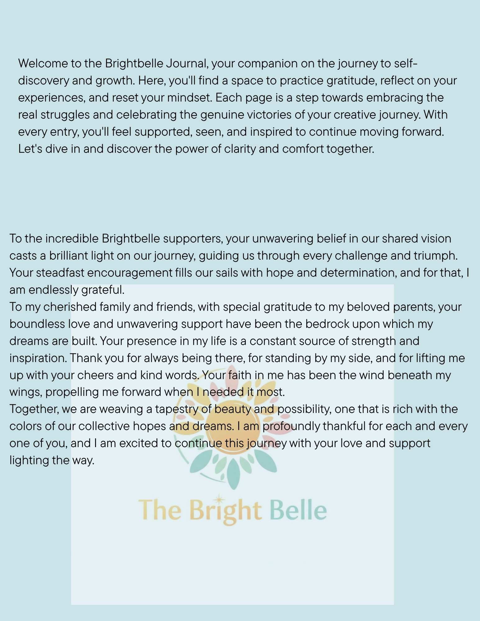 Shop the collection thebightbelle store Categories: Select a Category 75 grow challenge self growth journal self help thebightbelle store 75 grow challenge | self growth | journal | self help | My Journal for the 75 Grow Challenge E-Book Sale Price: $20.00 Original Price: $45.00 Sale Add To Cart Added! Hard copy Book , 75 Grow Challenge Sale Price: $50.00 Original Price: $70.00 Sale Add To Cart Added! Have Questions?Belle@thebrightbelle.com